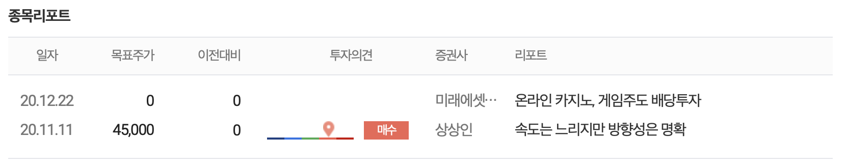 - 그리고 증권사 투자의견(리포트)을 참고하면, (미래에셋, 상상인 2곳밖에 리포트가 없으며, 목표주가는 45,000원으로 예측하고 있는데, 참고하시면 되겠습니다.)