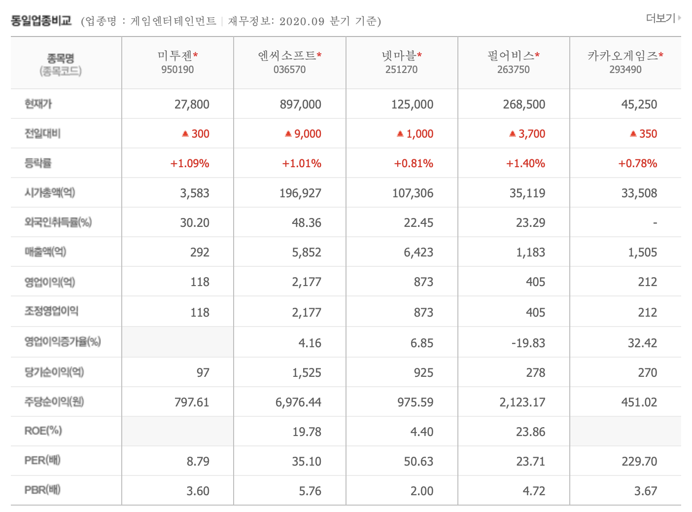 (*예를 들면 시가총액 3조 3,500억 원의 카카오 게임즈(코스닥 9위)와 금년도 '영업이익'이 큰 차이가 나지 않을 만큼 준수한 실적을 보여주고 있는 것 같습니다.)
