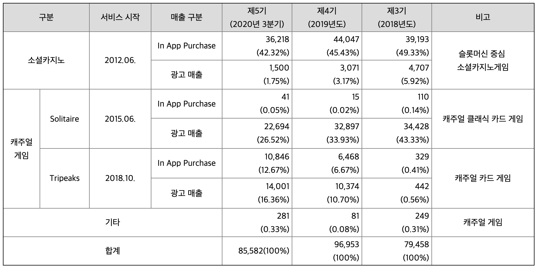 *카지노 게임 외 에도 캐주얼 게임도 매출의 상당 부분을 차지하고 있음을 알 수 있습니다.