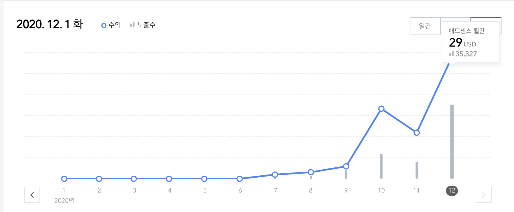 | [블로그] 2020. 11월 블로그 수익을 알아보자 (+구글 애드센스) (1) | 2020.12.04 |