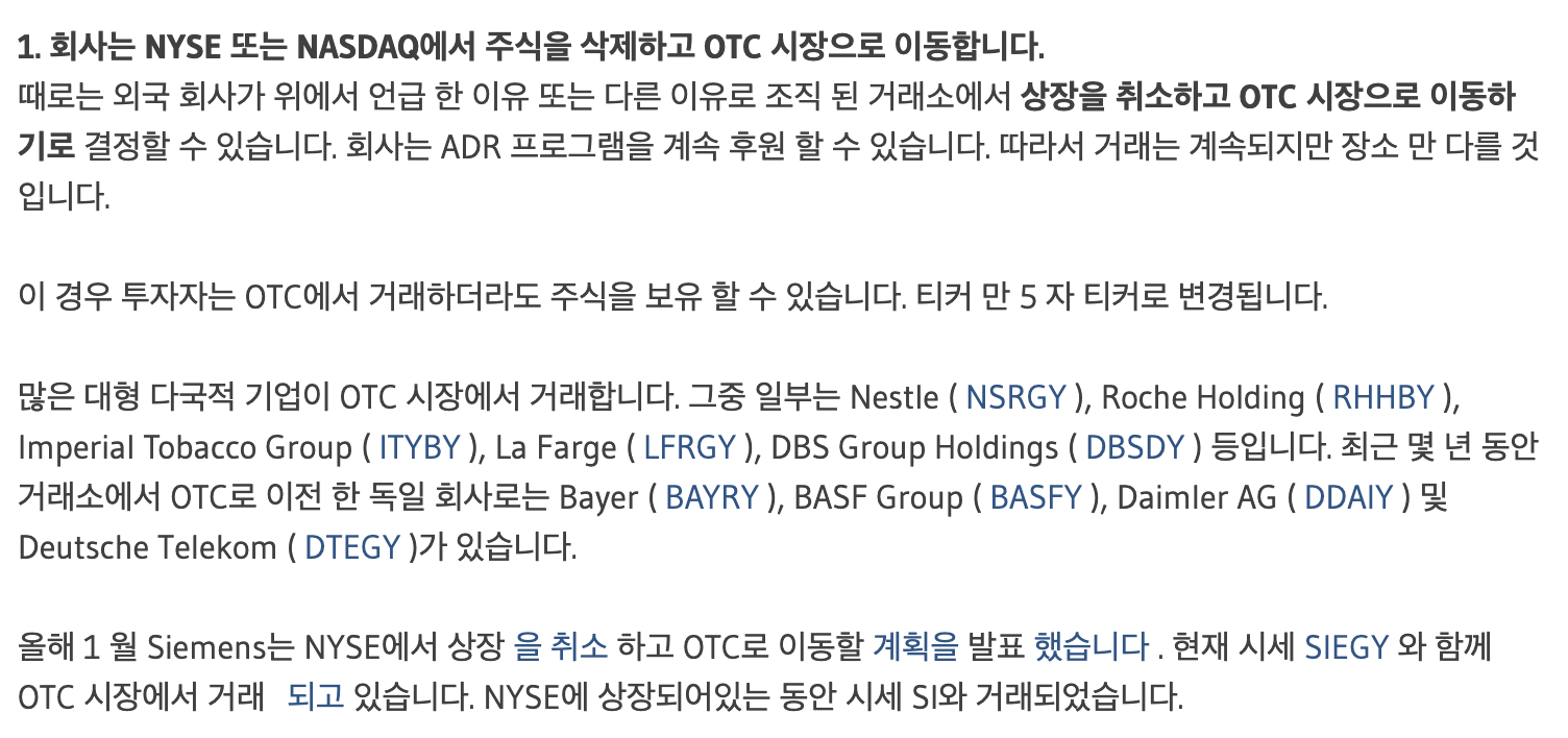 (*'ADR' 상장폐지 이후 절차에 관한 자료를 찾기 힘들었으며, 해당 내용은 https://topforeignstocks.com/ 에서 확인한 자료입니다. / *자세한 내용은 해당 홈페이지에서 확인하시면 되겠습니다.)