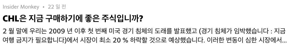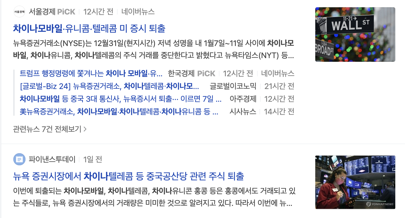 1. 새해를 맞아 경제 관련 뉴스를 검색하던 중 "차이나모바일" 등 3개 중국기업에 대해 미국 뉴욕증권거래소에서 '상장 폐지' 절차에 들어갔다는 뉴스를 보게 되었습니다.